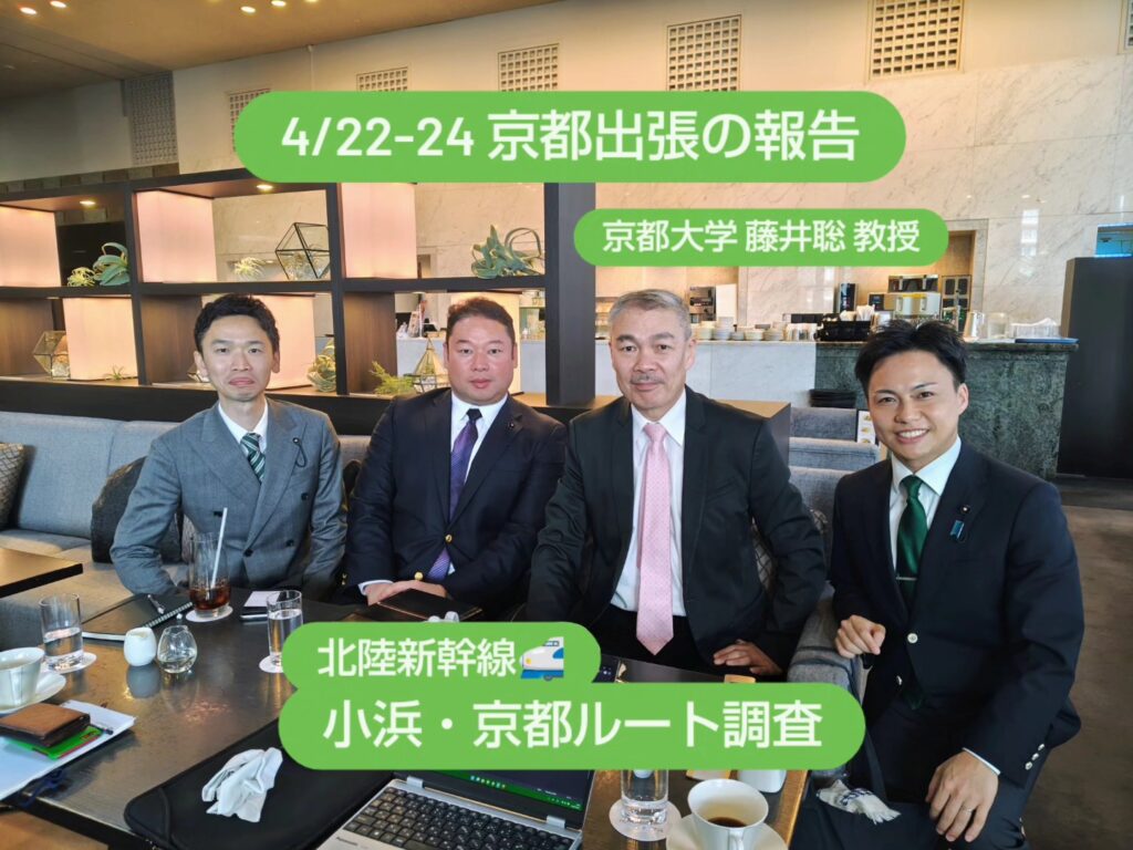 県議会「ふくいの党」としても福井県内にいるだけだと分からない京都の方々の生の声や各種懸念、また事業者(鉄道・運輸機構)側の対策方針などをしっかり調査すべく4月に京都・大阪へと出張してきました。