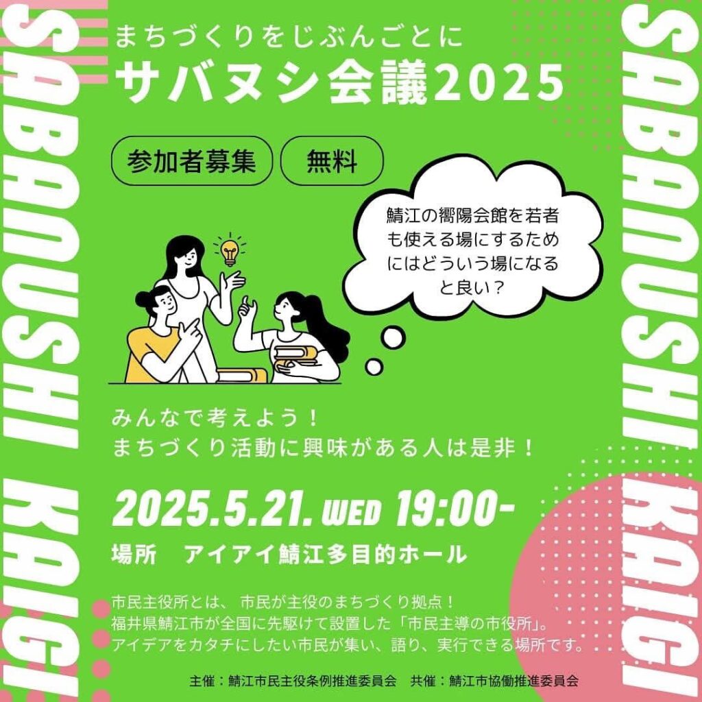 5月21日(水)19時半より、アイアイ鯖江にてサバヌシ会議を開催します!!✨