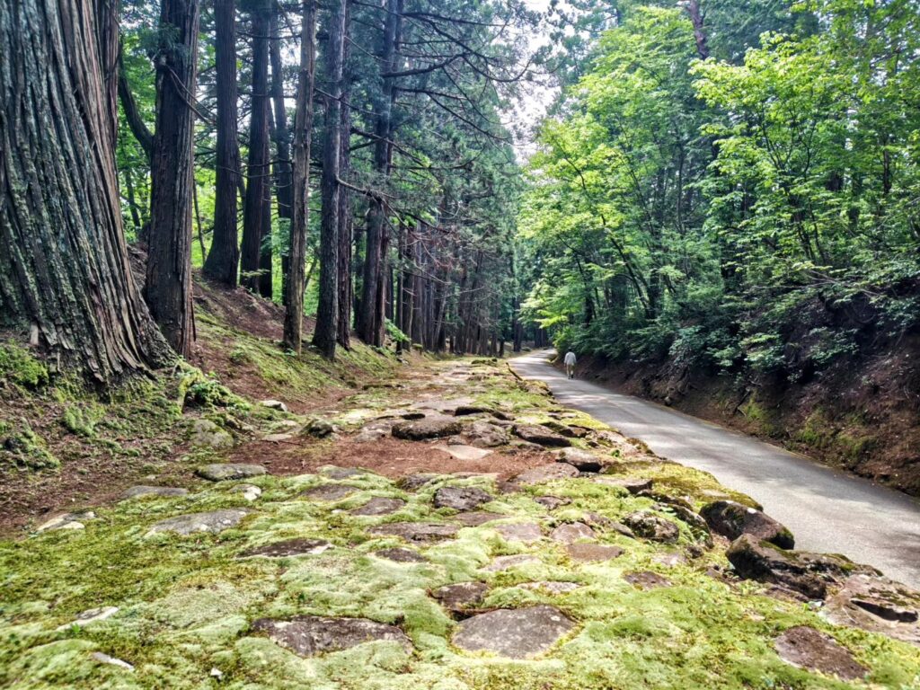あえて「旧参道」(2枚目の写真です。700メートル続く、千年前から現存する石畳の参道。)の方を歩いてみたときに、ふと