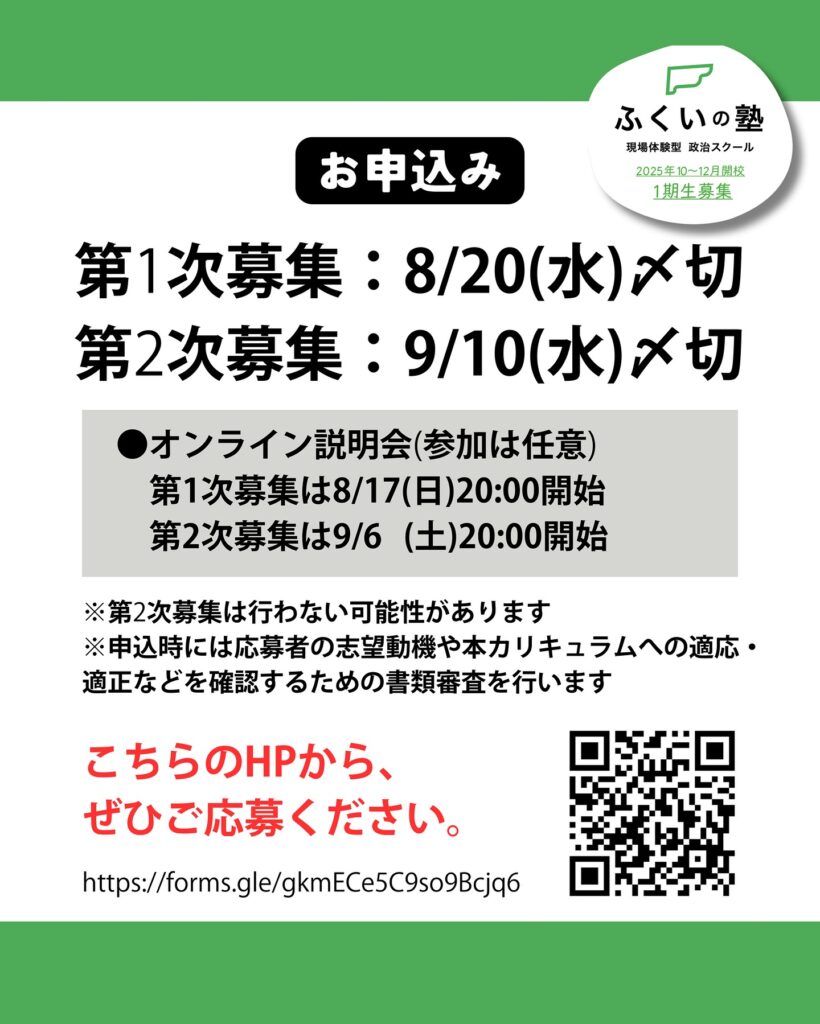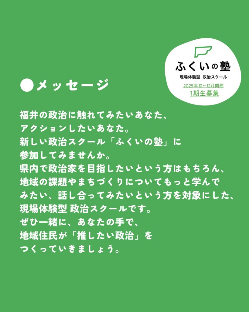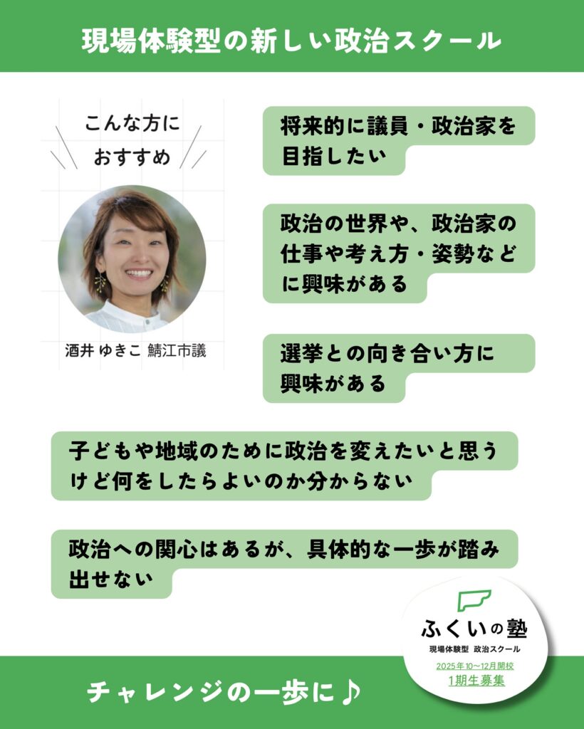 新しい政治スクール「ふくいの塾」に参加してみませんか。
