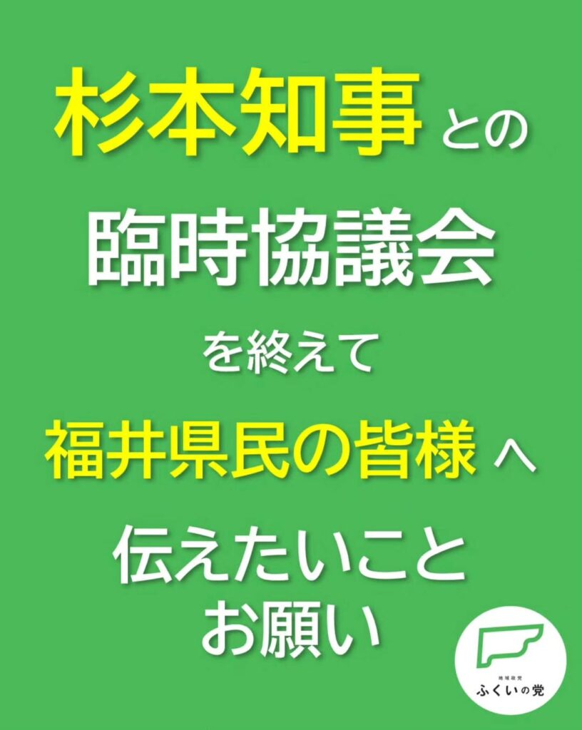 🟢福井県民の皆様へ~杉本知事の辞任表明を受けた臨時協議会の報告とお願い🟢