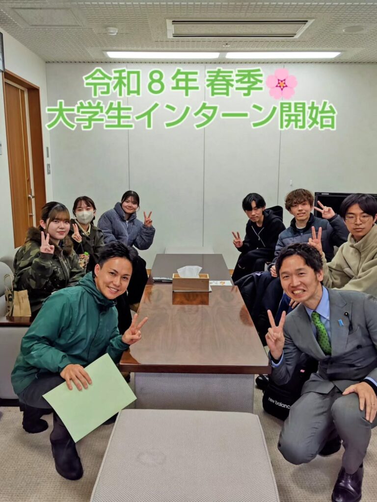 今回も始まりました、三宅県議と僕で合わせて5名の学生たちが、3月末まで色々僕らの活動に同行したりしているので、どうぞお見知りおきください😁